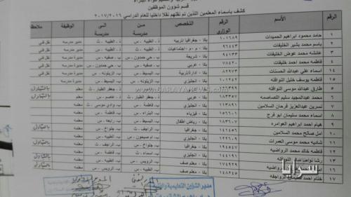 وتاليا كشف بأسماء المدراء والمديرات والمعلمين والمعلمات المنقولين