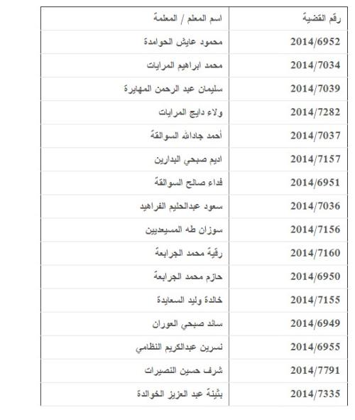 وقد أفاد محمد عسكر مسؤول الشؤون القانونية في النقابة أن هناك دفعات أخرى ستصدر قريبا بعد ان يصدر بها حكما قطعيا من المحكمة ، وستعمل النقابة على إصدار قوائم بأسمائهم تباعا ، كما وأكد أن على المعلمين والمعلمات الواردة اسمائهم بالدفعة الأولى مراجعة فرع النقابة في الطفيلة اعتبارا من يوم اﻻحد 3/5/ 2015م من اجل استكمال بقية الإجراءات.
