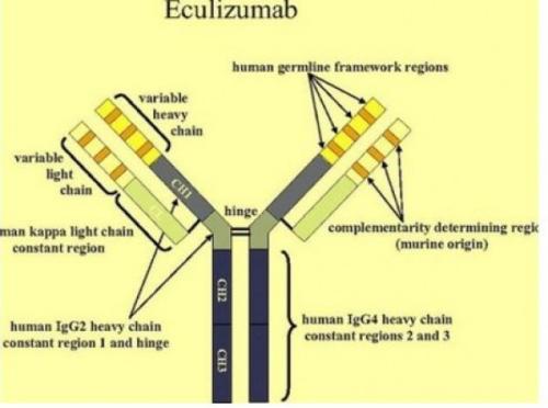 والدواء المعروف باسم Eculizumab أيضاً، هو الشافي الوحيد بعد المعجزة الإلهية من مرض يطلق عليه الأطباء اسماً غريباً وصعب الترجمة، وهو Paroxysmal nocturnal hemoglobinuria والذي يبدو من اسمه اللاتيني أن لأسبابه علاقة بالتبول الليلي يستفحل معها ويفتك بخلايا الدم الحمراء، وكل جرعة منه تكلف أكثر من نصف مليون دولار بالعام، طبقاً لـ 'العربية.نت' حسب تقارير أميركية أشارت إلى أن الموافقة على استخدامه تمت قبل 7 سنوات فقط في الولايات المتحدة وأوروبا.
