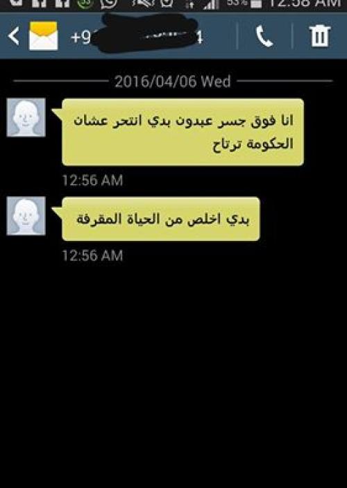 يذكر ان رسالة مجهولة وصلت سرايا يعلن فيها شخص اقدامه على الانتحار والالقاء بنفسه من اعلى جسر عبدون المعلق.