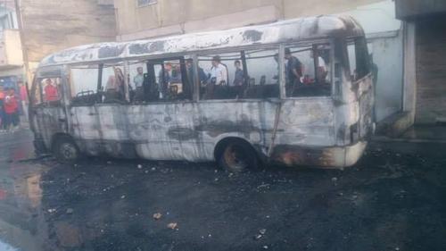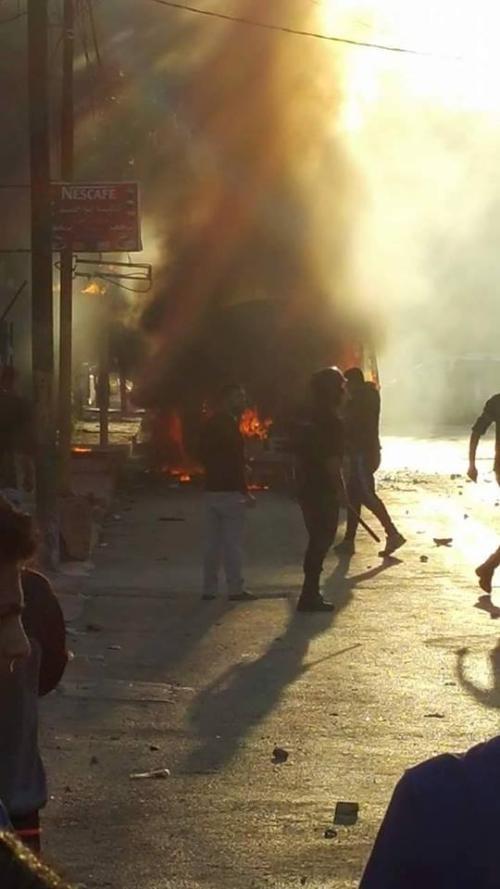 بالصور.. اندلاع اعمال شغب و حرق باص بعد مبارة بين فريقي دير ابوسعيد والكرمل..والدرك يتدخل 21-05-2016