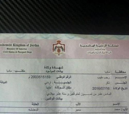اردني رُزق بمولود وقت انقلاب تركيا .. فأسماه "رجب طيب" .. صورة