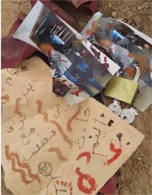 وحسب ما تناقل على مواقع التواصل الاجتماعي ان سيدة داخل احد الصالات قامت برش 'سحر على العريس حيث تم التبليغ عنها والعثور داخل حقيبتها على صور لشبان .