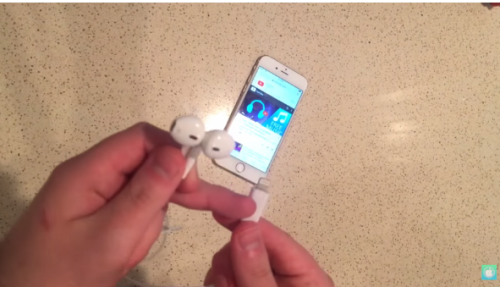 واستعرضت القناة في الفيديو السماعة مع هاتف آيفون 6 إس، وعرض الشخص الموجود في الفيديو كيف يمكن استخدام أزار التحكم لإيقاف الموسيقى ورفع وخفض الصوت.