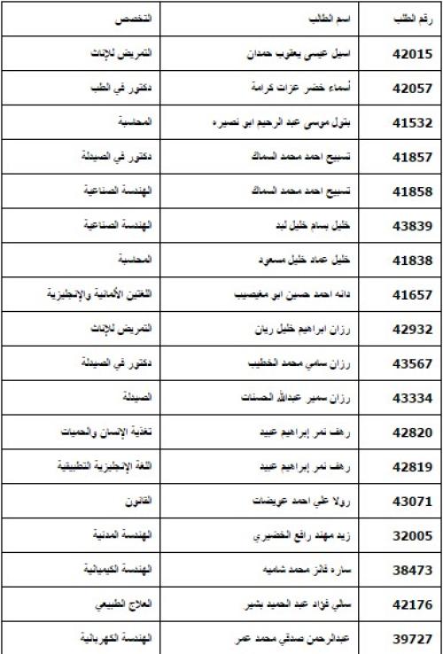 المرشحون الفلسطينيون للقبول بالموازي في الاردنية .. اسماء 11-09-2016