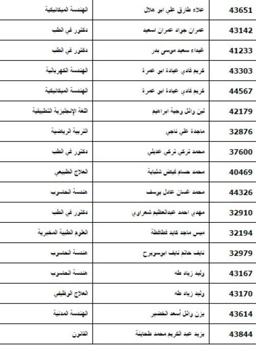 المرشحون الفلسطينيون للقبول بالموازي في الاردنية .. اسماء