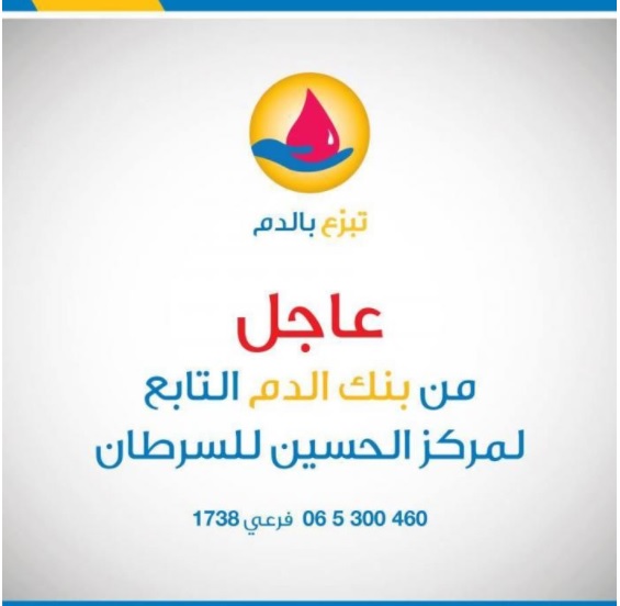 ناشد بنك الدم في مركز الحسين للسرطان المواطنين للتبرع للدم وبشكل، مخصص من فئات −O و −A بشكل عاجل.