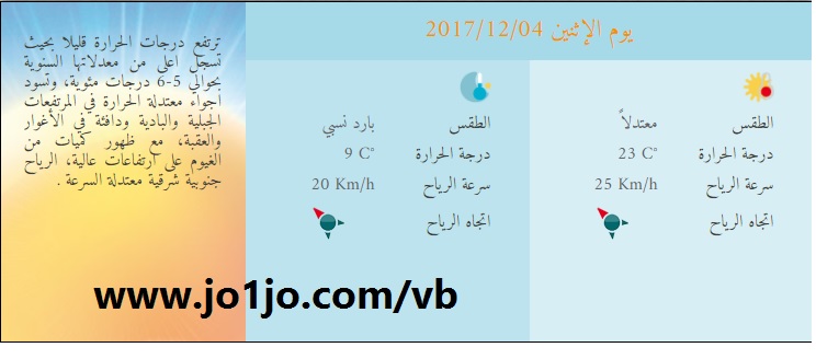 حالة الطقس يوم الاثنين 4/12/2017 في الاردن