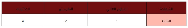 ج- بالإضافة إلى ما استحقه طالب التعيين من نقاط بمقتضى الفقرتين (أ،ب) من هذه المادة، يمنح الحاصل على أي من الشهادات التالية بعد الشهادة الجامعية الأولى النقاط التالية :-
