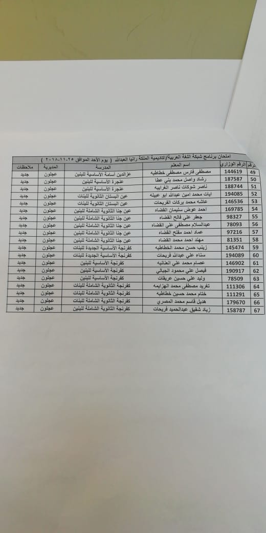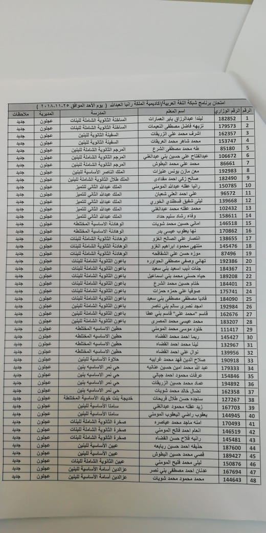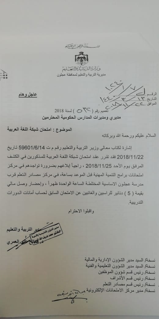 اسماء المتقدمين لامتحان دوره شبكة اللغة العربية ليوم الاحد 25/11/2018 تفاصيل
