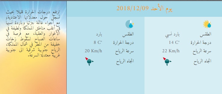 تفاصيل الحالة الجوية المتوقعة ليوم الأحد 9-12-2018 ï؟½ï؟½
